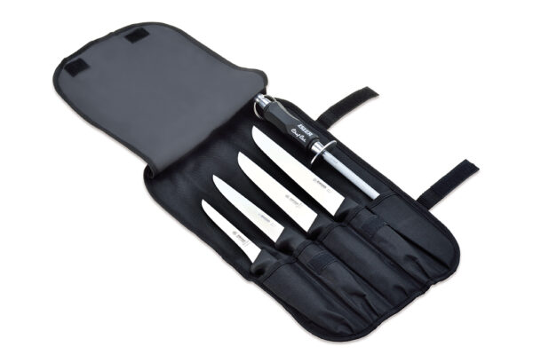 Bestehend aus 2 oder mehr Messern. Meistens in einer praktischen Tasche.