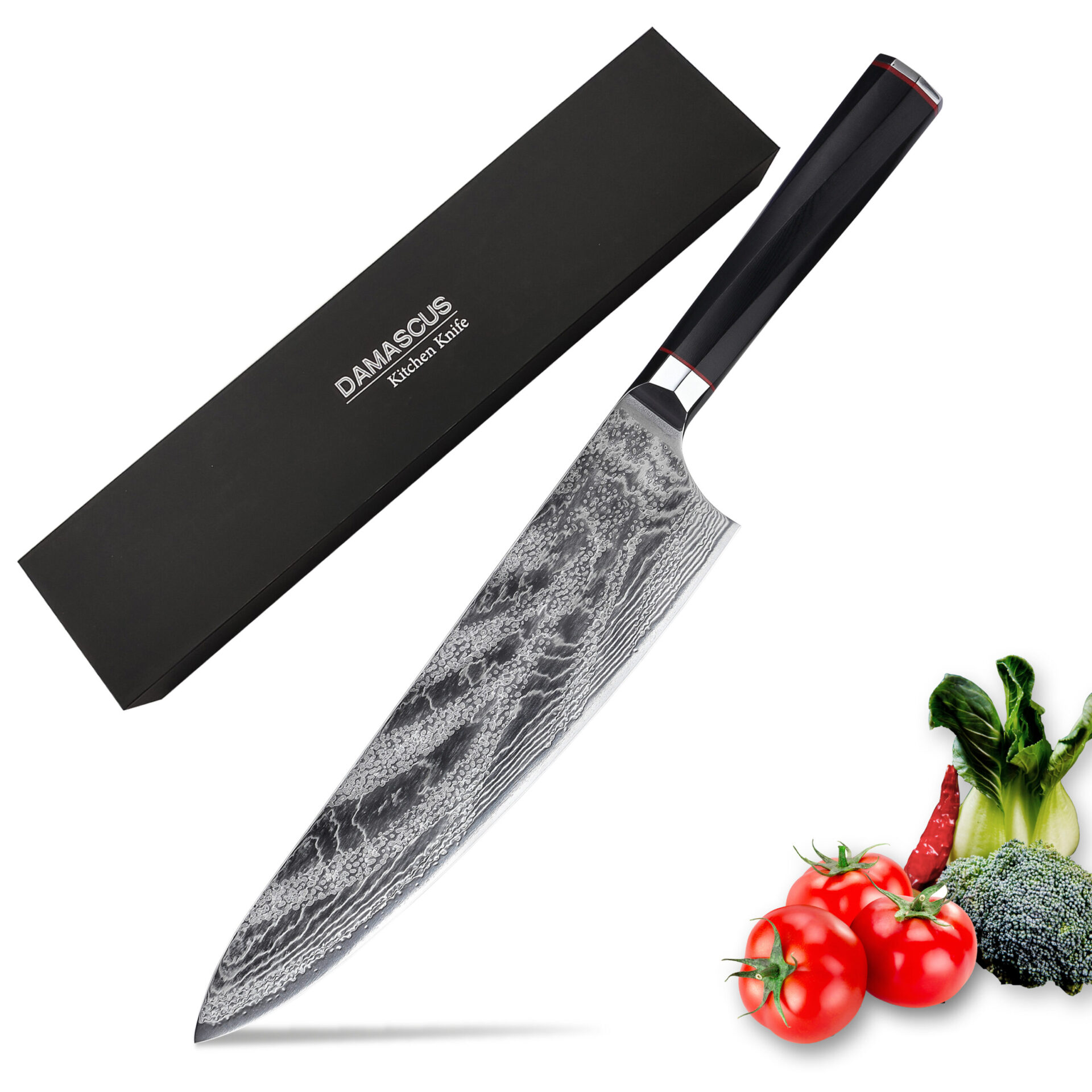 Das exquisite Profildesign und die Materialien des Damast Tranchiermesser sorgen für ein reibungsloses Anwendungserlebnis. Schneiden Sie durch Tomaten wie Butter, tranchieren Sie Fleisch nach Ihren Wünschen und hacken Sie sogar durch dünne Knochen. Genießen Sie unübertroffene Vielseitigkeit.