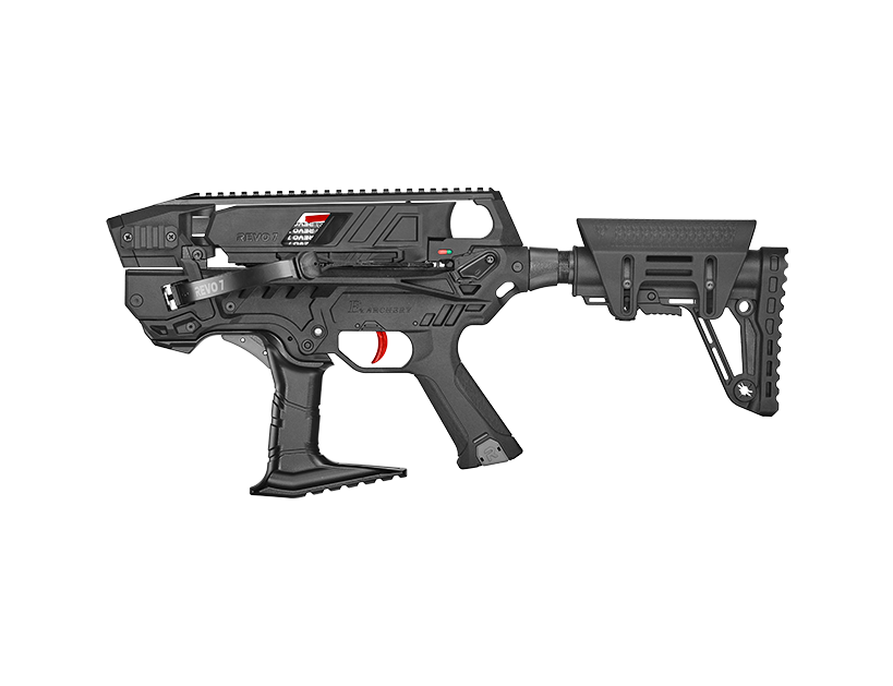 Es handelt sich um eine taktische Pistolenarmbrust der 3. Generation, mit bahnbrechenden Features und hervorragender Performance. Die EK Archery REVO 7 Armbrust zeichnet sich durch ihre schnelle Nachladung aus, die eine schnelle Schussfolge ermöglicht. Inspiriert vom Design der Cobra RX Adder wurde der Spannmechanismus optimiert, um sie noch effektiver zu machen. Durch die gesamte obere Schiene, die nach vorne gleitet, ohne dass die Armbrust gebogen werden muss, behalten Sie Ihr Ziel immer im Blick! Das verbesserte Magazin, das jetzt abnehmbar ist und auf der linken Seite der Armbrust eingesetzt wird, ermöglicht ein schnelles Nachladen der Armbrust in nur wenigen Sekunden. Die Revo7 verfügt über ein wechselbares Magazin (7 bzw. optional 12 Schuss), eine durchgängige obere Picatinny-Schiene, eine schnelle, komfortable Unterhebelspanntechnik und ein „echtes“ Armbrustschloss. Die wechselbaren Wurfarme (Schnellwechselsystem) gibt es in 30, 60, 90 und 120 Pfund Stärke (90 Pfund ist Serienausstattung). Die Pfeile wurden völlig neu entwickelt, weisen extrem schlanke Karbon-Schäfte auf (Durchmesser 5,5mm). Durch die schlanke Form sind die Flugeigenschaften wesentlich besser als bei den bisher üblichen Pistolenarmbrust-Pfeilen (Durchmesser 6,3mm). Die Waffe kann ohne Werkzeug blitzschnell in die Hauptbestandteile (Korpus, Wurfarm, Picatinny-Schiene, Hinterschaft, Magazin) zerlegt und auf diese Weise komfortabel transportiert werden. Die Repetiertechnik erlaubt die Abgabe von 7 Schüssen innerhalb von ca. 4 Sekunden (Übung vorausgesetzt). Nach der Schussabgabe ist die Waffe blitzschnell wieder schussbereit. Die Waffe verfügt über eine Leerschuss-Sicherung (bei leerem Magazin kann die Waffe nicht gespannt werden). Zur Vermeidung einer ungewollten Schussabgabe kann die Waffe mittels beidseitig bedienbaren Sicherungshebels gesichert werden. Die Sicherung kann entweder automatisch nach jedem Spannvorgang eingelegt werden oder manuell aktiviert werden (per Modus-Wahlhebel).