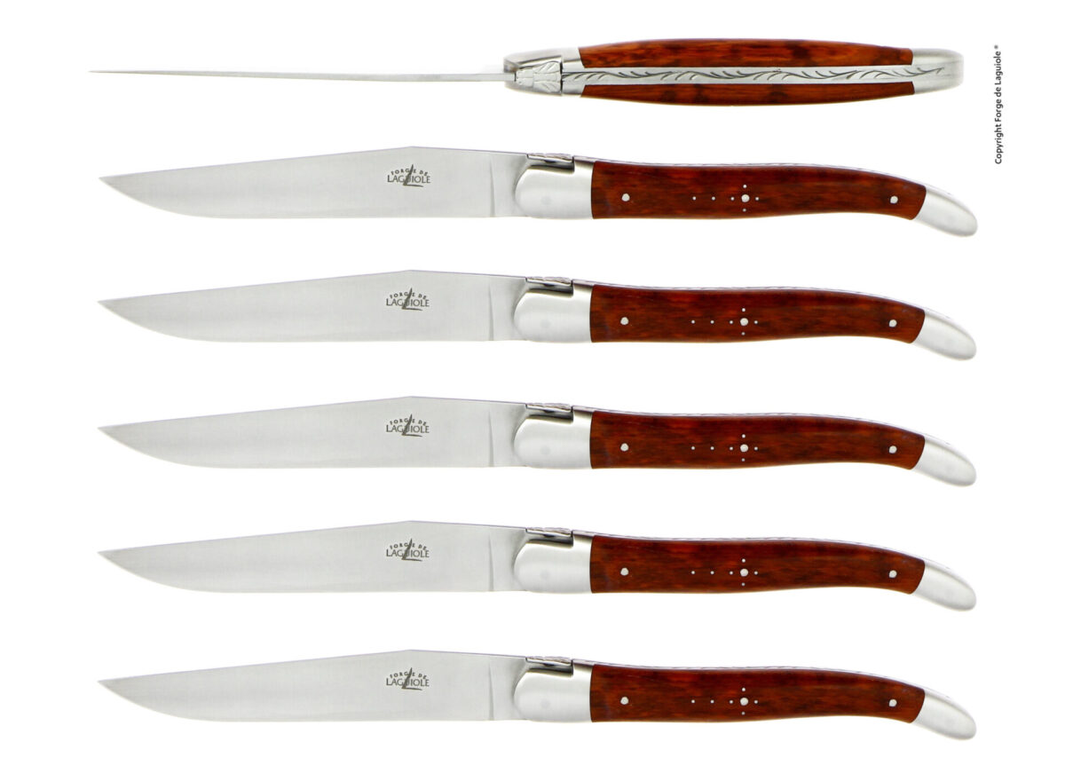 Ein Original Forge de Laguiole Messer, mit seinen edlen Materialien und seiner puren Eleganz, bringt Authentizität und Raffinesse an einem mit Liebe und Sorgfalt gedeckten Tisch. Der fließende und seidige Schnitt unterstreicht den Genuss einer sorgfältig zubereiteten Mahlzeit, von der Wahl der Speisekarte bis zur leidenschaftlichen Zubereitung der Speisen.